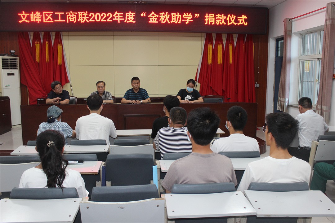 本次捐助儀式在文峰區(qū)工商聯(lián)積極號召下,44家執(zhí)委企業(yè)共籌集愛心助學(xué)資金133000元,資助我區(qū)貧困大學(xué)生35名。